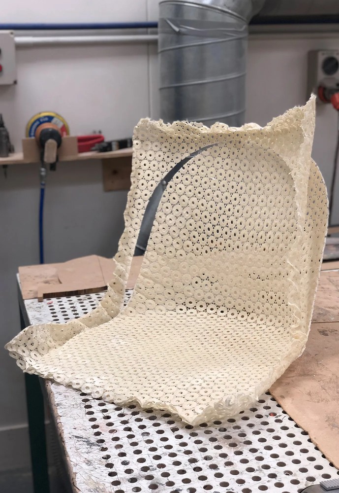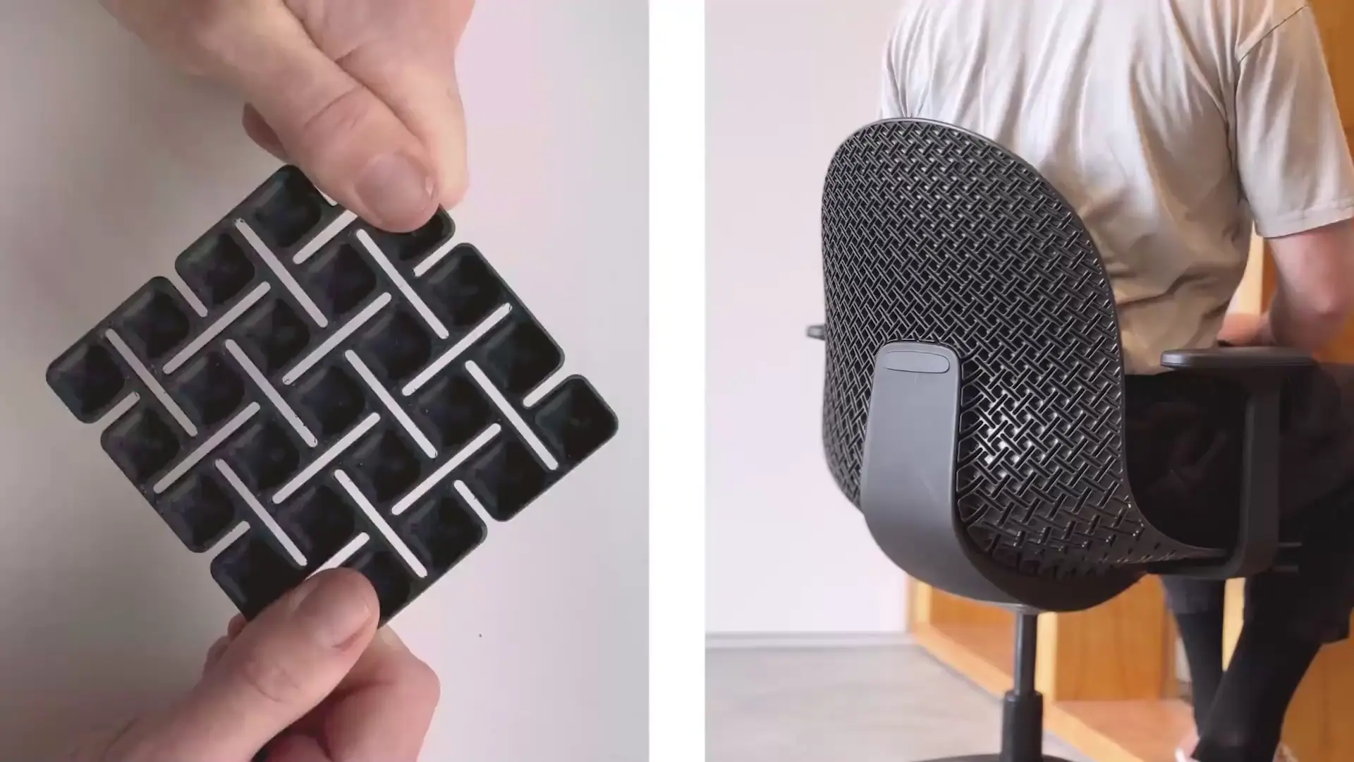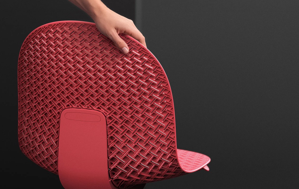 Precision formed perforations create an auxetic pattern – transforming the one-piece seat shell into an interconnected matrix of springs that each flex independently, allowing the whole shell to seamlessly conform to every twist and posture.