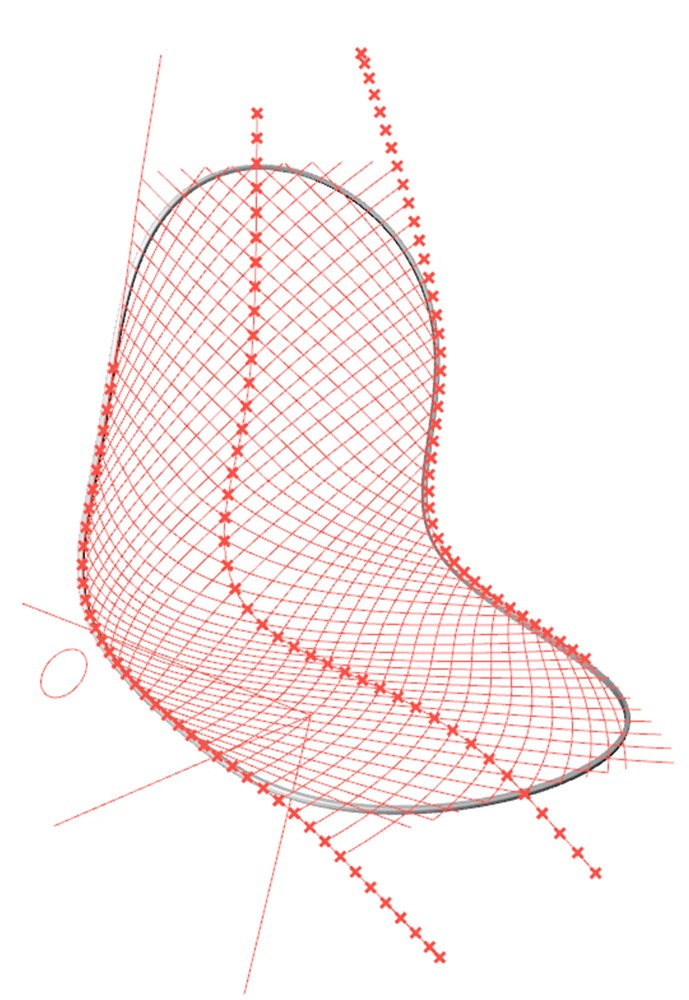 The Keel is crowned by a flexible, breathable seat shell. The shell is moulded as a single piece with over a thousand individual perforations through it. The arrangement of these perforations creates a matrix of springs to sit against. Each spring flexes dynamically, allowing the surface of the shell to mould to your body and its movements.