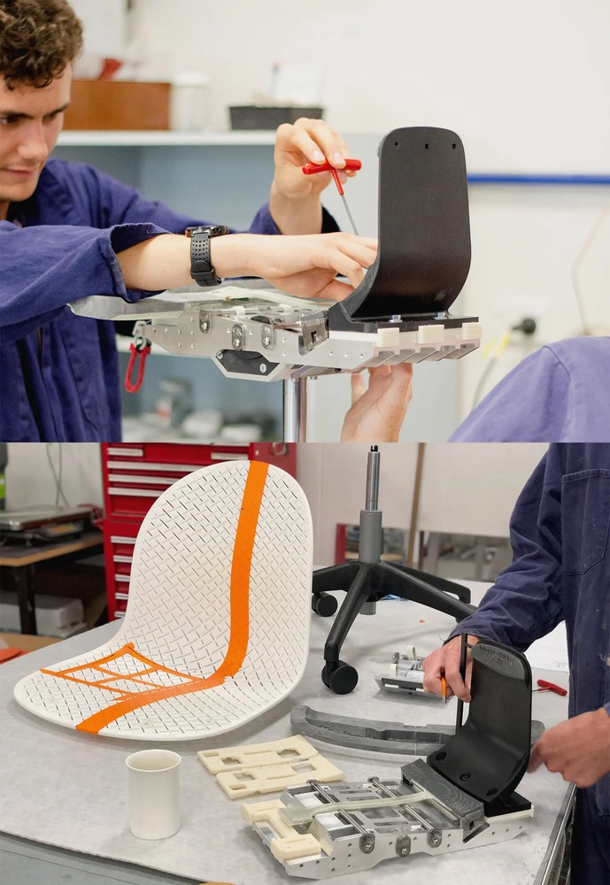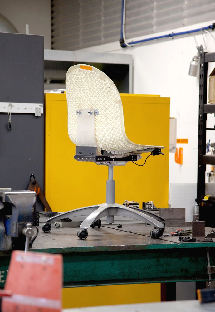 Environmental impact was considered in each design decision. We distilled the chair down to its most essential components, and we made a conscious decision to limit our palette of materials. We also conducted rigorous testing and analysis to ensure the material used in each part had a clear purpose – to provide strength, longevity and to enhance comfort.